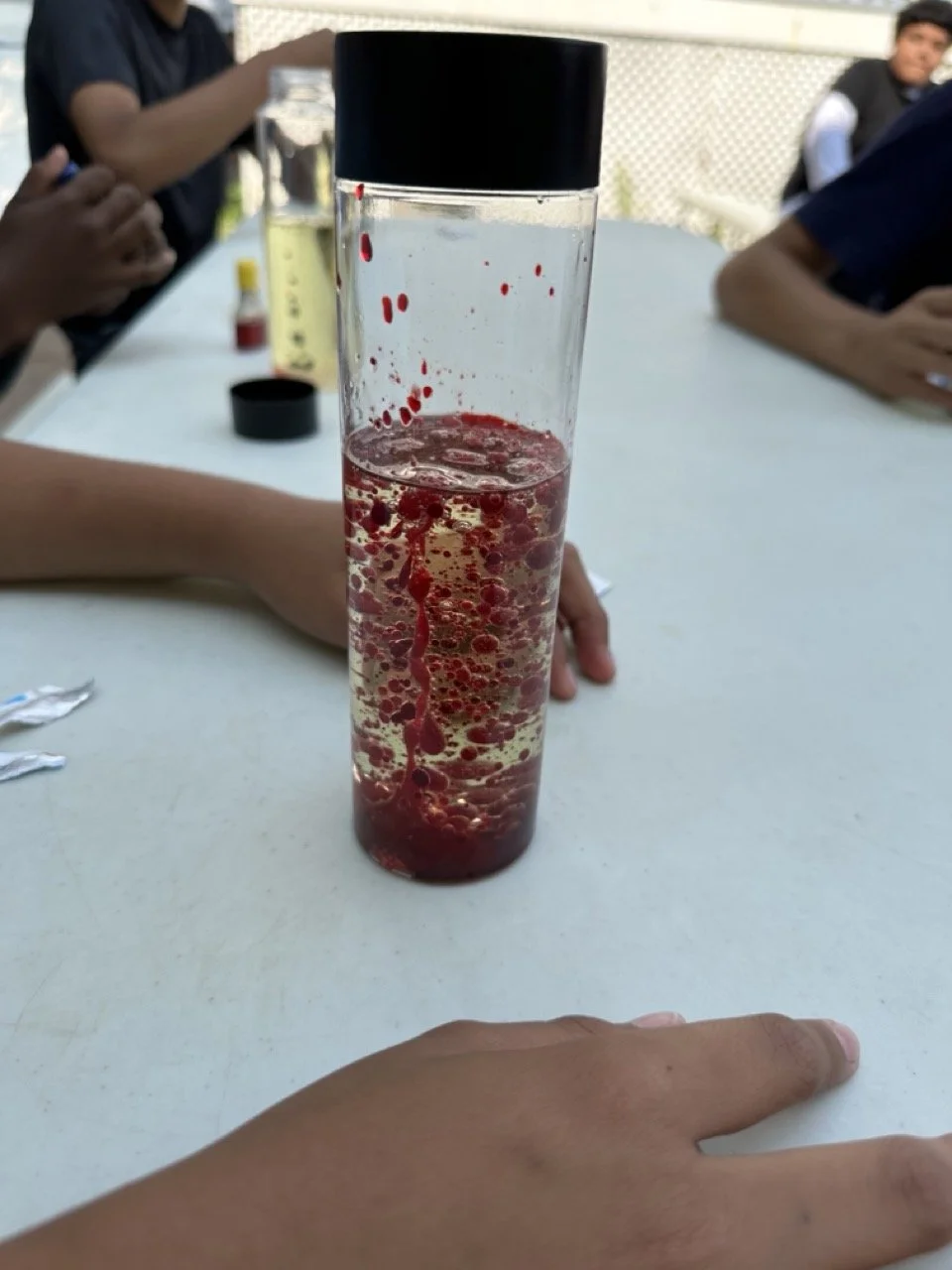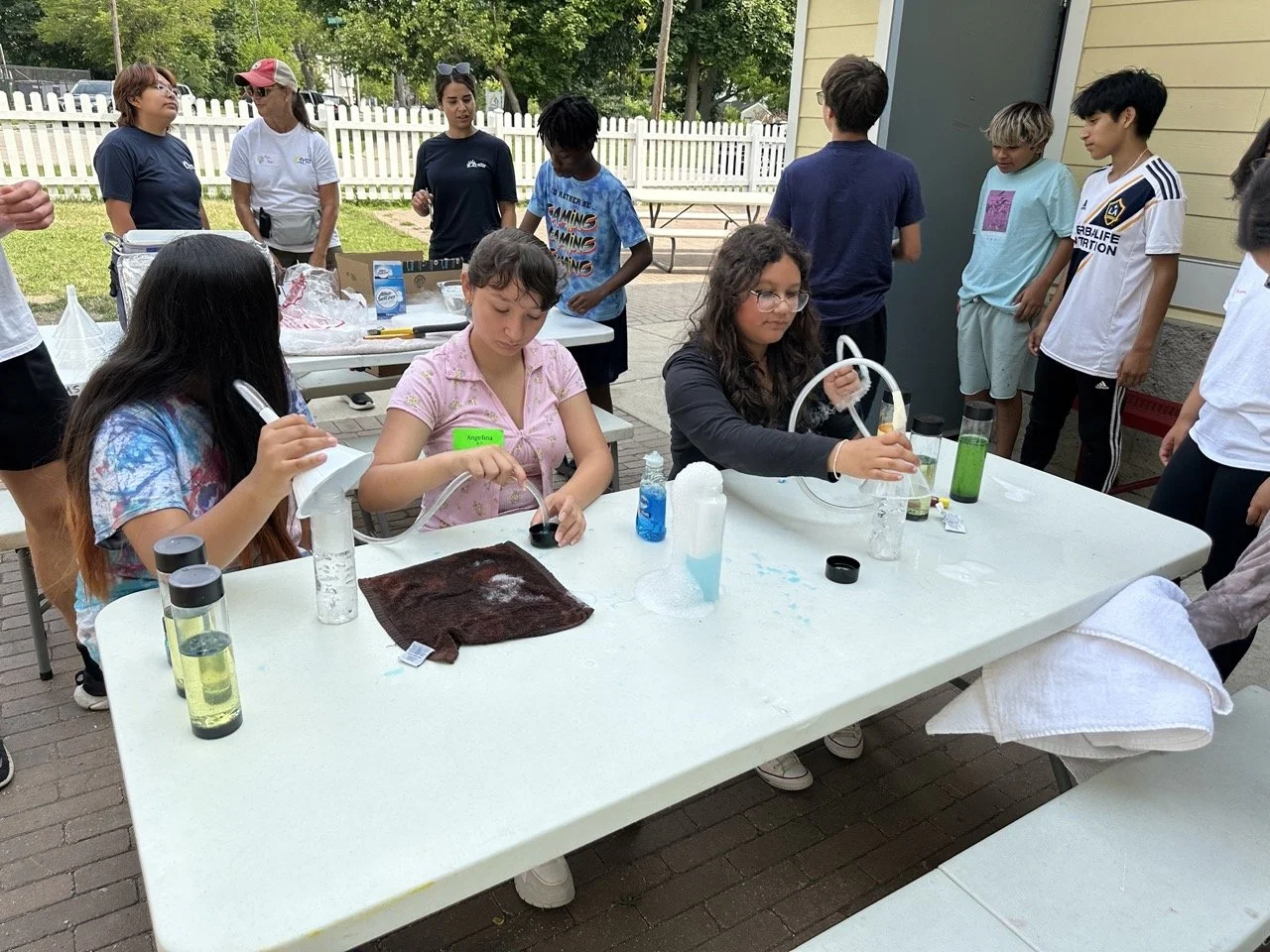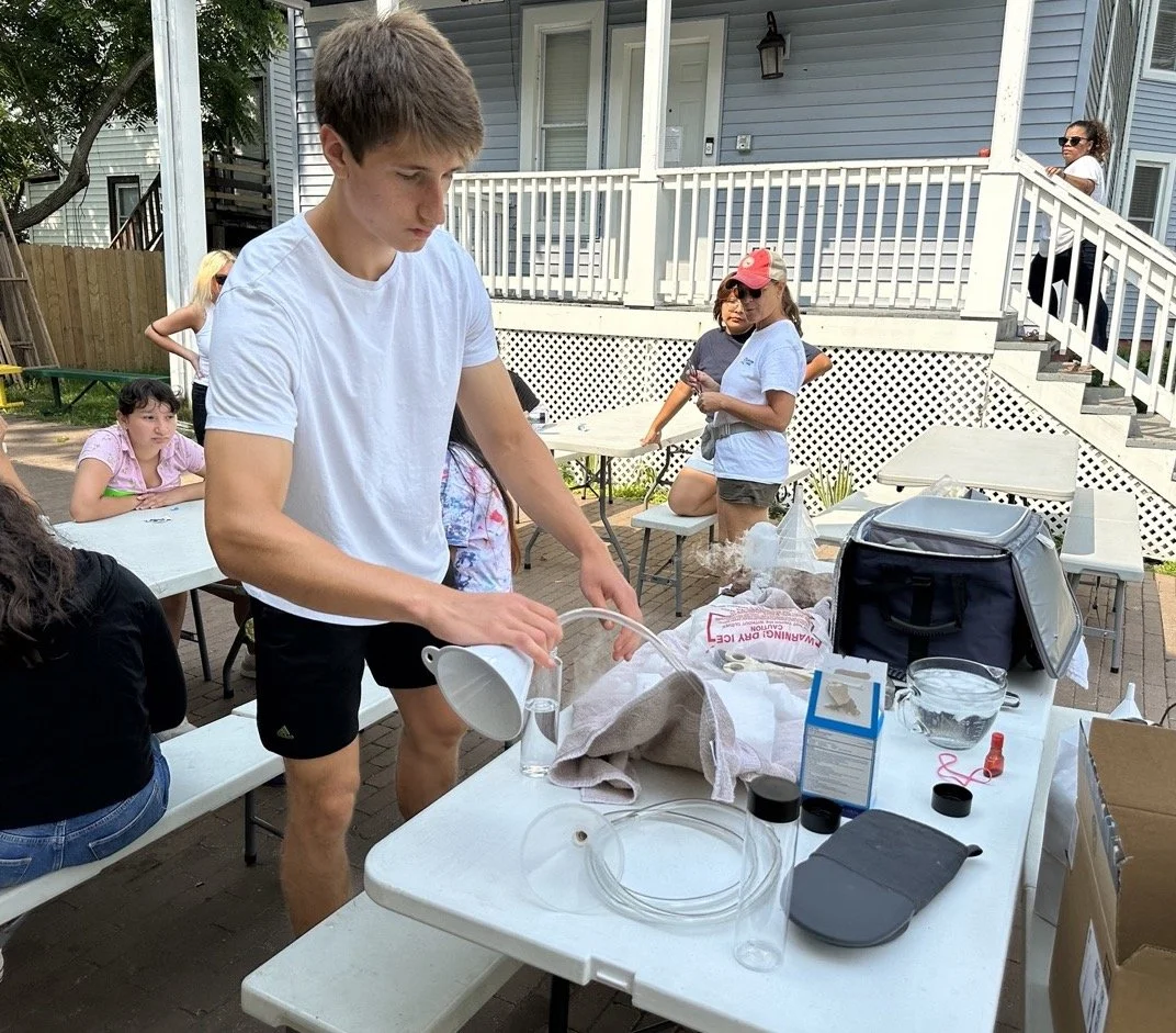 Another great session with the 8th graders over at a local community center. This time our founder Luke brought experiments for room temperature lava lamp creation, dry ice dish soap bubble creation (bubbles filled with carbon dioxide from melting dry ice), and aluminum can implosion (with just some heat and ice cold water).